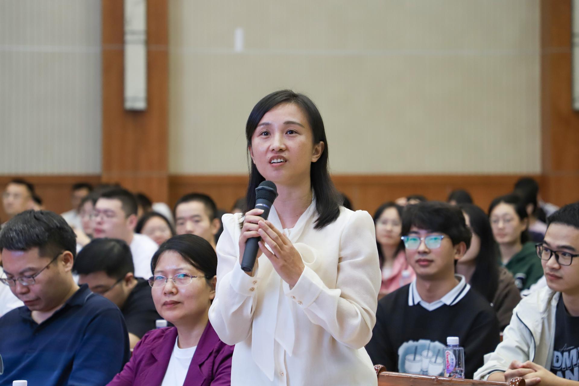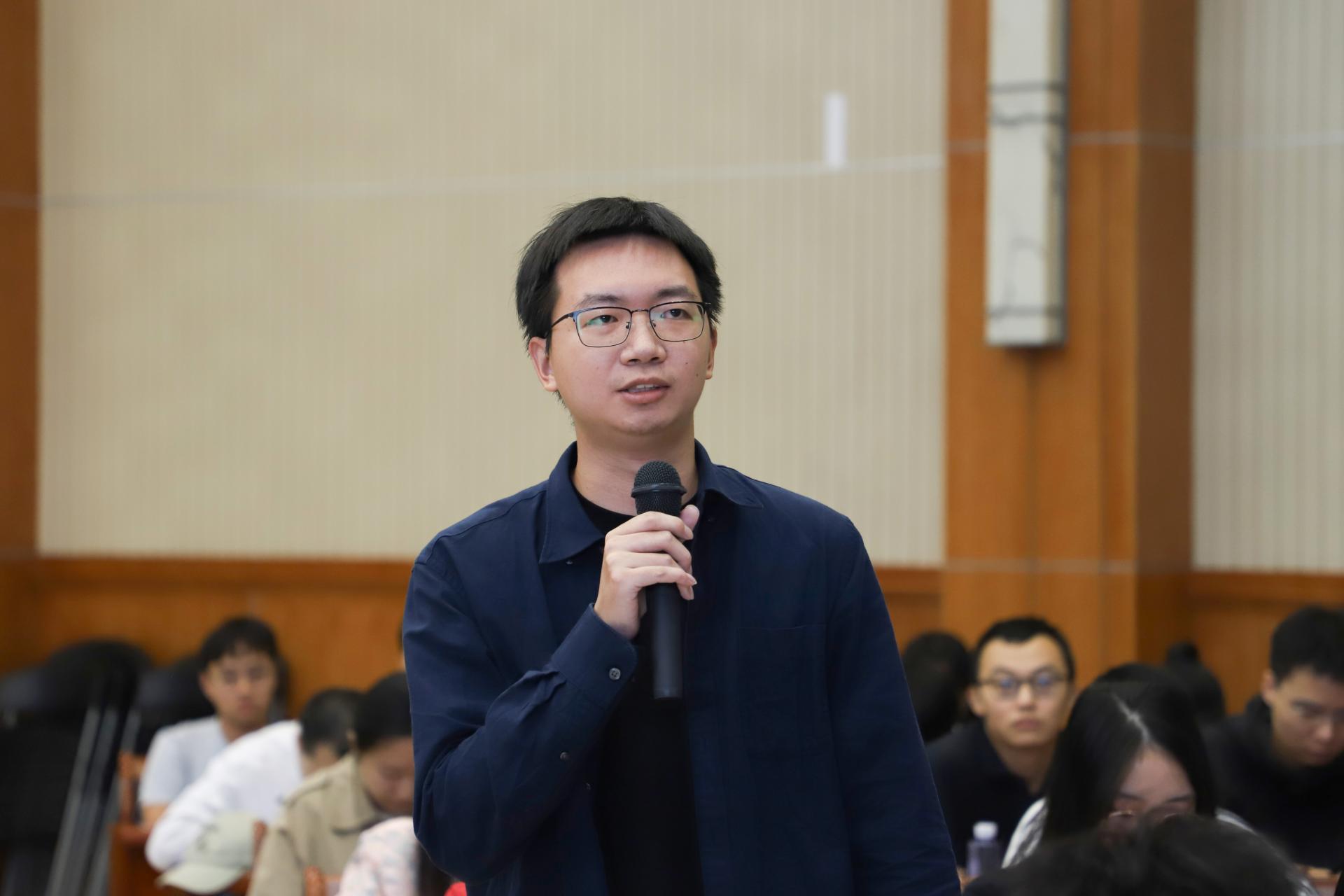 在交流提问环节,现场师生积极围绕统计学理论与人工智能应用之间的关系和分形维数与反映混沌复杂性的熵之间的关系分别向陈松蹊院士和沈维孝院士提问。陈松蹊院士结合具体案例,再次强调了统计学理论在人工智能应用及解决现实问题中的重要性。沈维孝院士从几何的角度,深入阐述了分形维数与熵之间的密切关系。此外,两位院士还倡导广大师生在探索未知领域时勇于创新,紧扣时代发展的脉搏,以取得更具有前瞻性的研究成果。