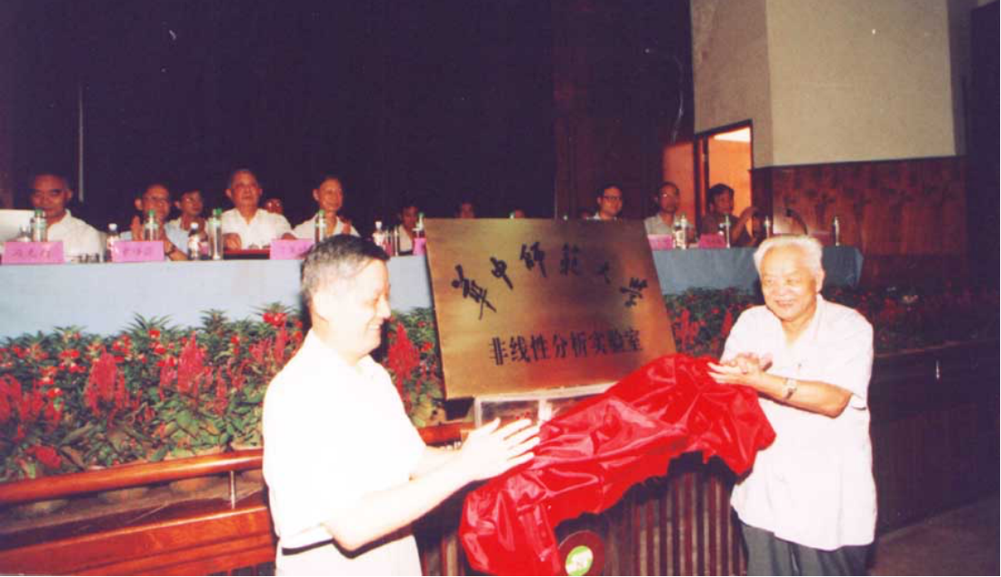 图4吴文俊院士与晏章万书记为非线性分析重点实验室揭牌(2000年8月)